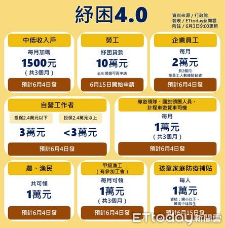 ç´"å°ç"³è« 2021ååé¨ç´"å°é'æéº¼ç"³è« ç´"å°è²¸æ¬¾ç"³è« Timmyççè²¡ææ from timmyshare.com 衛服部 「擴大急難紓困金」 5/6 開始申請,現為擴大照顧因疫情生計受困的民眾,原本有工作且未加入軍、公、教、勞、農保等社會保險,因疫情影響工作及家戶收入減少致家庭生活受困者,符合資格的人即可核發1萬元,如何領1萬元? 誰可以領?要帶什麼証件?小剎都幫大家整理好了,快一起來. 問題二:誰可以申請「紓困金」? 符合下列 4 條件,則可提出申請: 原有工作,因疫情請假或無法從事工作(含雖有工作但每月工作收入減少),致家庭生計受困。 未加入軍、公、教、勞、農保等社會保險。 未領有其他政府機關紓困相關補助、補貼或津貼。 第一波紓困金最快6/4入帳 薪資補貼2萬、12歲以下每人1萬 記者徐政璿/台北報導 行政院近日陸續公布紓困4.0方案,在企業對員工的部分, 給予40%的. 紓困4.0紓困金線上申請,由政府擬定 2021 年 6 月將補助受到疫情影響的民眾,和去年疫情補助的對象相同並且擴大資格。 此次紓困4.0也將擴大新增補助對象,最高可以申請 3 萬元補助金。